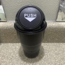Made from non-toxic ABS plastic, our little trash bin mimics the look of large, full-sized trash cans, with a “PUSH” logo at the lid opening. The can fits right into a standard-sized cup holder for a trash bin for snack wrappers right within your reach. The can measures 7.9 x 2.7 inches (L x W).